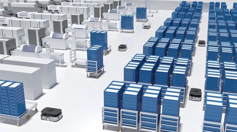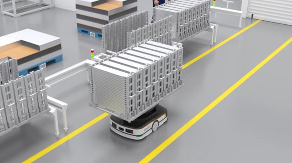 根据搬运物料的载具及重量,选择AGV联动,实现全厂物料跨楼层的智能搬运