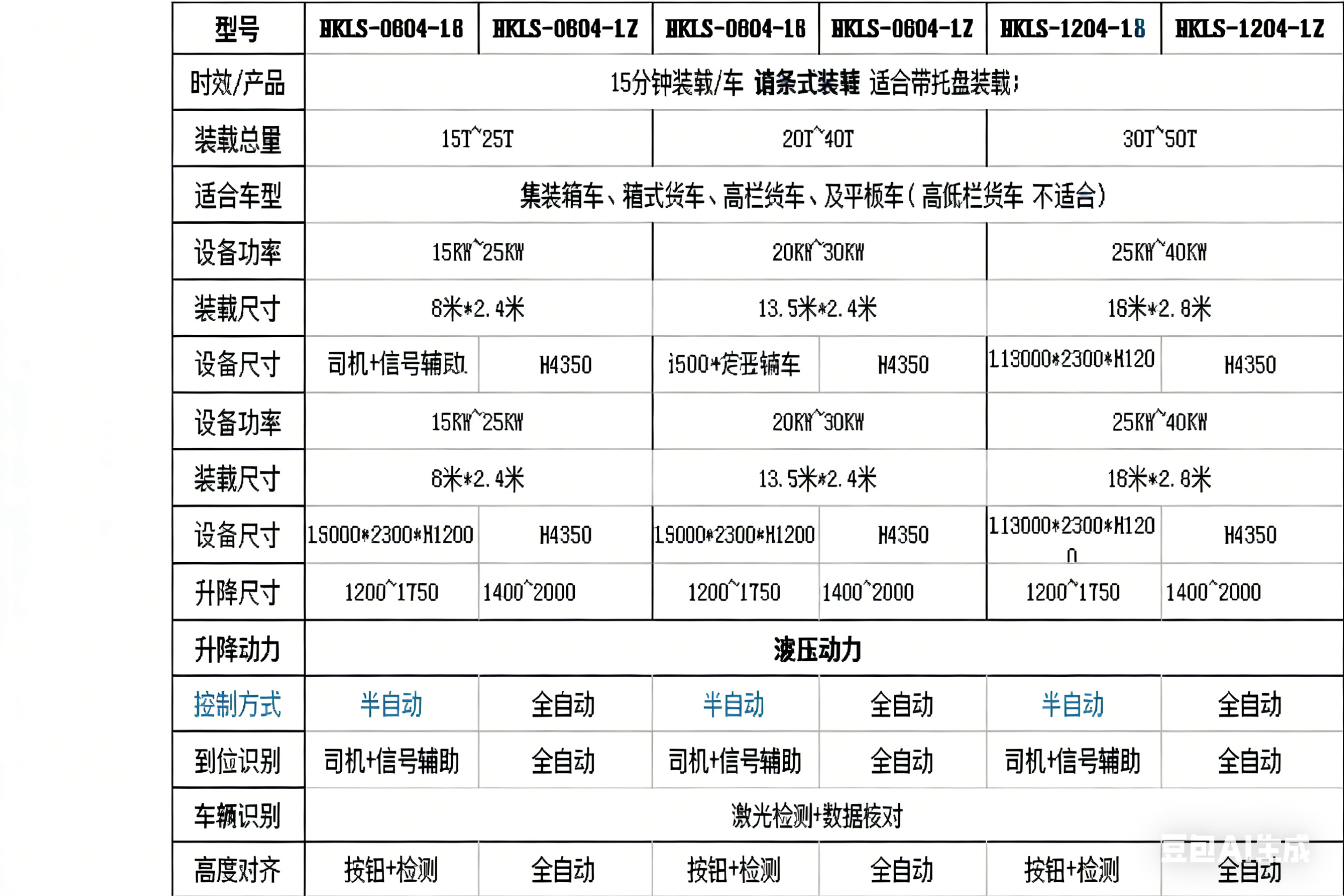 装车尺寸:12米长设备、对应20米长车子尺寸;(减少占地面积)适合带托盘装载、含川型、田字格;塑料托盘、木质托盘、简易托盘使用滚链式装载板可适应底部规整的产品装车(无需托盘)使用带式装载板可适应底部不规整的产品装车(无需托盘)